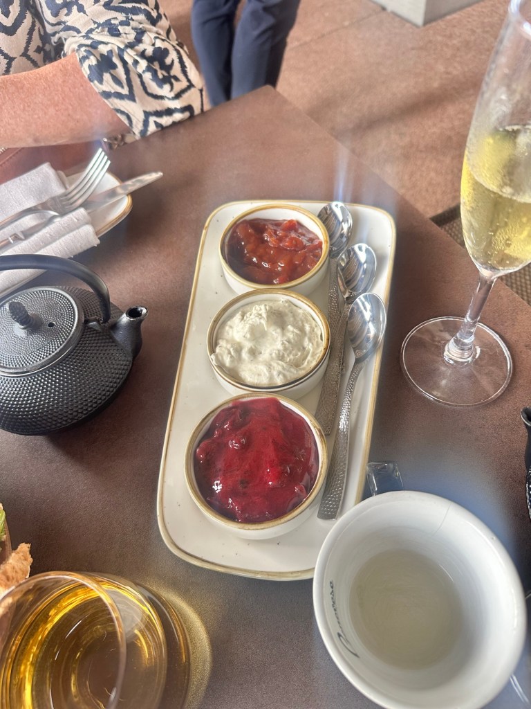 The condiments were among the most memorable elements of the experience. The strawberry and rosella jam paired with lemon myrtle scones was a highlight — vibrant, aromatic, and distinctly Australian. The scones themselves were accompanied by cream infused with wattle seed, adding a nutty complexity that elevated the classic pairing.