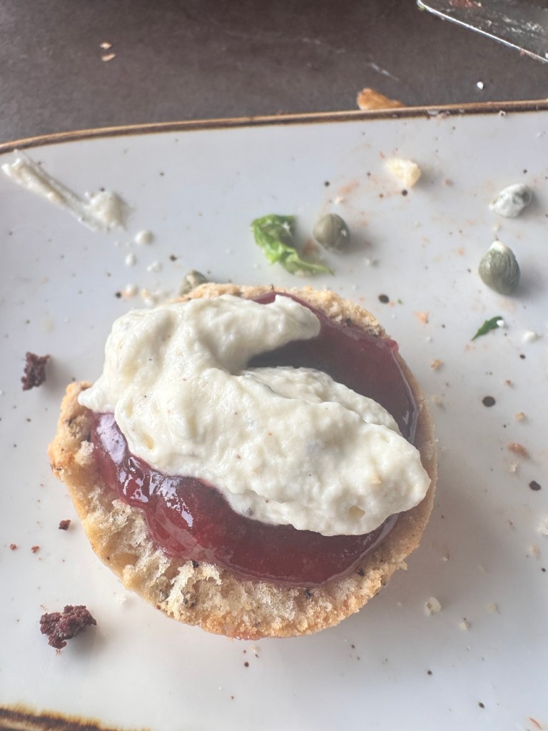 - Lemon myrtle & pepper berry cured salmon with crème fraîche on a bagel